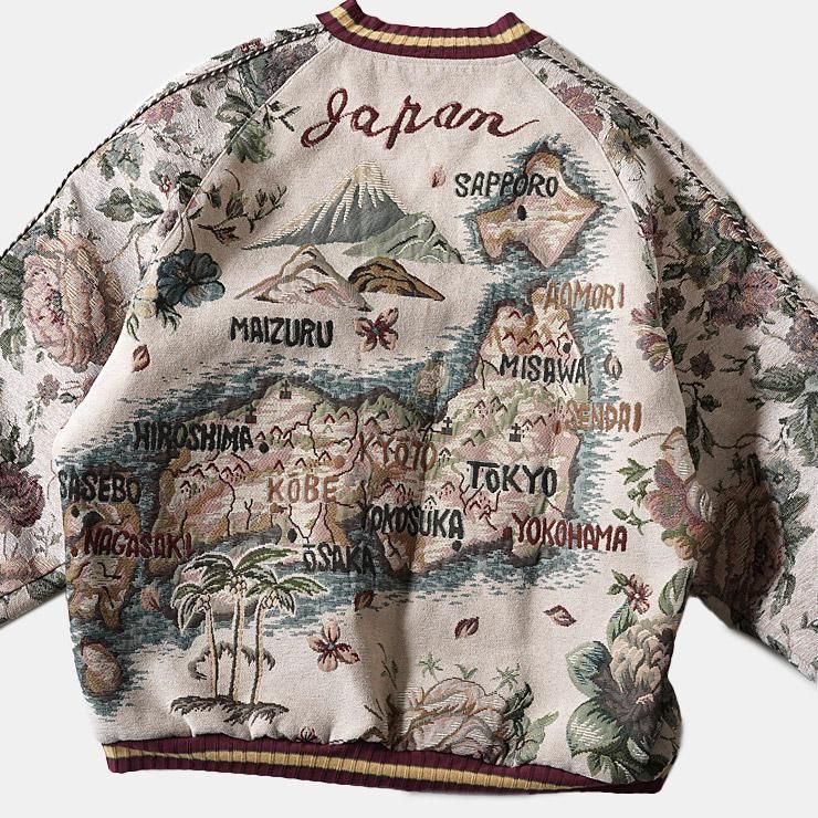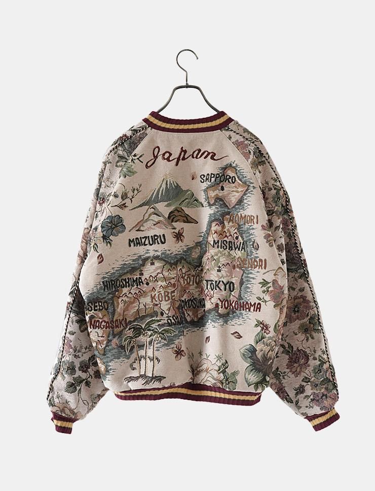 スーベニアジャケットに見られる刺繍デザインの日本地図をゴブランで表現しました。