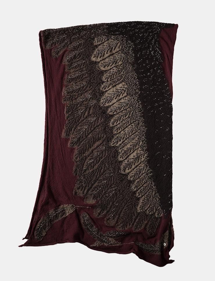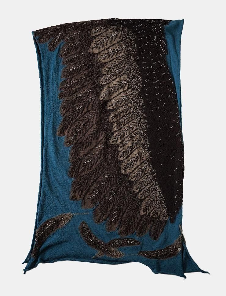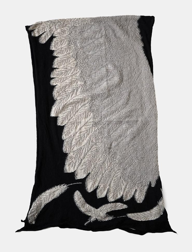 夜空に羽ばたく大鷲をモチーフにした縮絨ウールマフラー。
